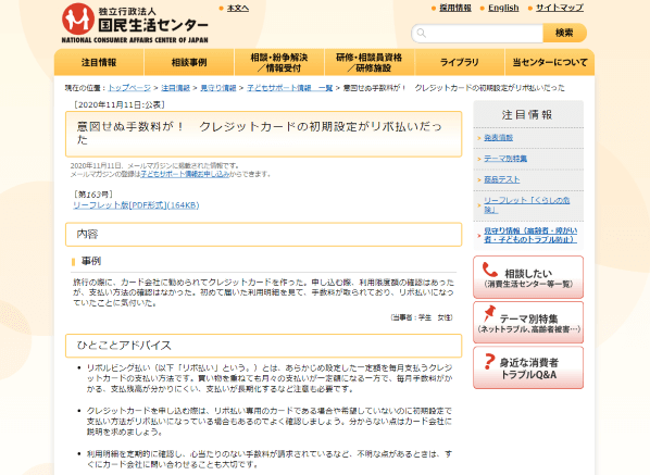 過剰なリボ払いの推進も見られ、「自動リボの設定になっていた」「予期せぬ手数料がとられた」などのクレームや苦情が、国民生活センターに寄せられています。